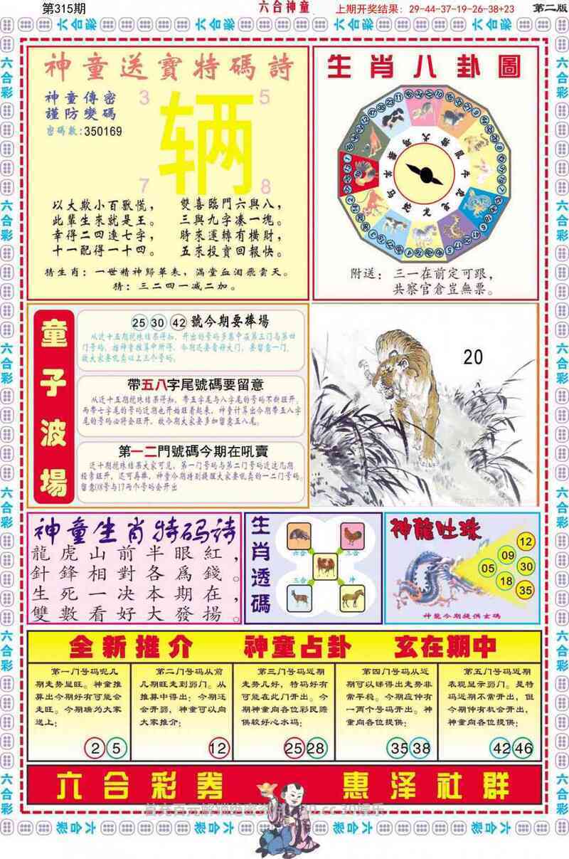 传真315期 今期生肖一八开,穿金戴银戴兰花 今期特尾二三七,三八三九还要防 风流才子俏佳人,玄机道破点三二 买了一六出二九,森林之中它为王 专横跋扈 同室操戈解:今期生肖一八开,穿金戴银戴兰花。一八解18鼠,金肖猴鸡,今期特尾二三七,三八三九还要防。解237尾,三八解龙,三九解兔。风流才子俏佳人,玄机道破点三二。风肖兔虎龙,三二解狗。买了一六出二九,森林之中它为王。一六解虎,二九解牛,王肖虎龙 拐特生肖:鼠猴鸡龙兔虎狗牛蛇 |